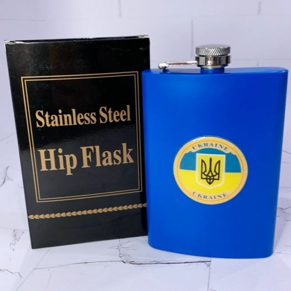Стильная и компактная фляга объёмом 9 oz (примерно 270 мл) - удобный аксессуар для повседневного использования и отдыха. Сочетает практичность, надежность и патриотичный дизайн. Фляга 270 Мл Синяя Герб Флаг Украина