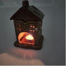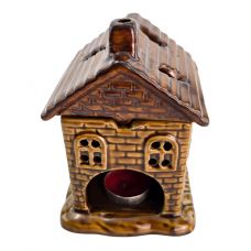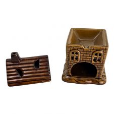 Эстетическая аромалампа в виде миниатюрного домика с коричневой глазурью. Съёмная крыша открывает ча..