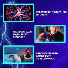 Светильник плазменный шар с молниями - ночник в виде сферы с установленным внутри электродом, на кот..