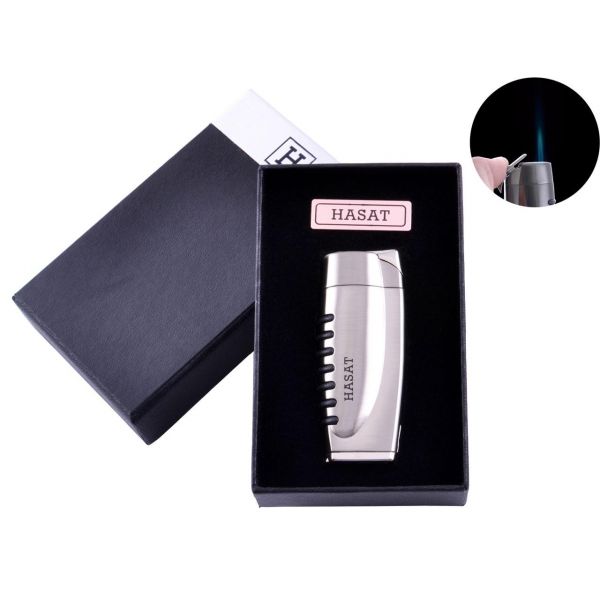 Зажигалка в подарочной коробке HASAT (Острое пламя) №4311 Silver