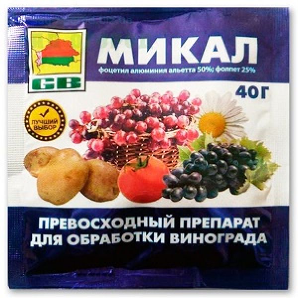 Фунгицид Микал для винограда 40 г Добрыня - специальный фунгицид для обработки винограда от гнили, оидиума, мучнистой росы и остальных болезней.