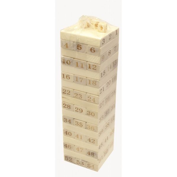 Игра настольная "Дженга" (54 бруска,4 кости)(26,5х7,5х7,5 см) 29739 - одна из самых популярных игр для компании. Задача игры состоит в том, чтобы сначала построить башню, а потом ее разбирать и достраивать так, чтоб она не разрушалась. Игроки по очереди вытаскивают брусочки и кладут наверх башни, задача сделать так чтоб она не обрушилась.